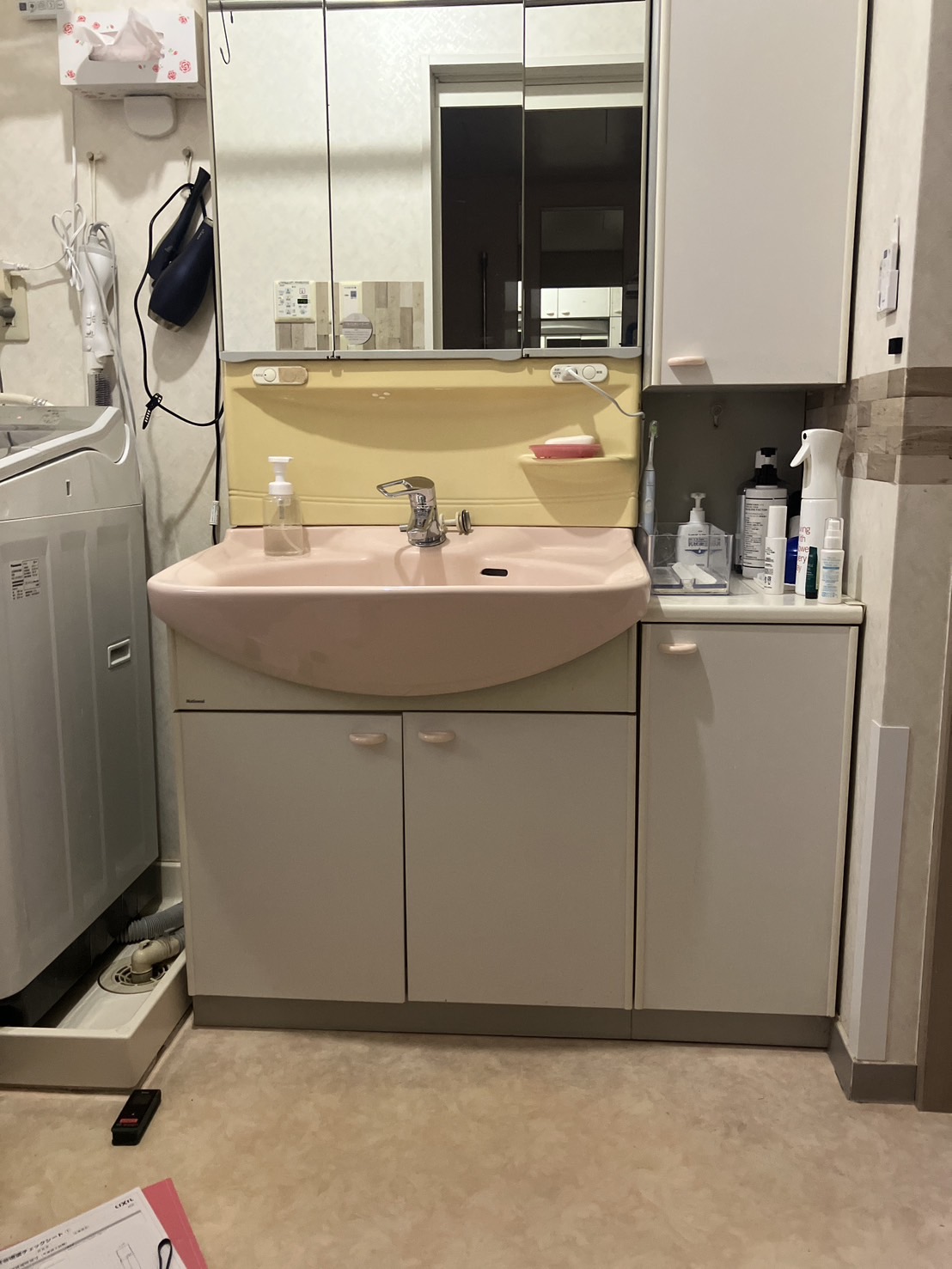 洗面化粧台の交換 2025年 5月施工 東京都文京区 ホーム施工事例室内壁・床洗面化粧台の交換 Before After きっかけ 古くなった洗面化粧台の使い勝手が悪いので新しくしたい コメント 洗面台下の収納が開き戸なので使い勝手が悪い。 屈まないと奥まで見えないので ギャラリー
